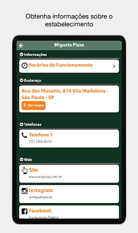 Migusta Pizza, delicious flavors of the real São Paulo pizza, such as: margherita, caprese, pepperoni, Portuguese, shitake and shimeji, zucchini, pepperoni, 4 cheeses, arugula, vegetarian, Parma ham, chicken and much more. See also sweet flavors: brigadeiro, Nutella, dulce de leche, lemon cream and other delights.