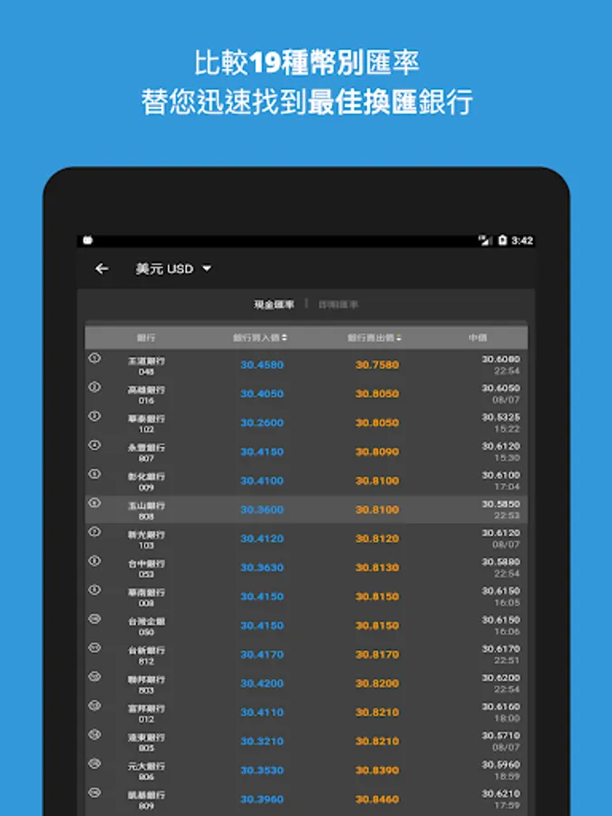 *有提供免費版本試用,可搜尋:台灣匯率通。