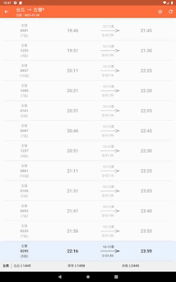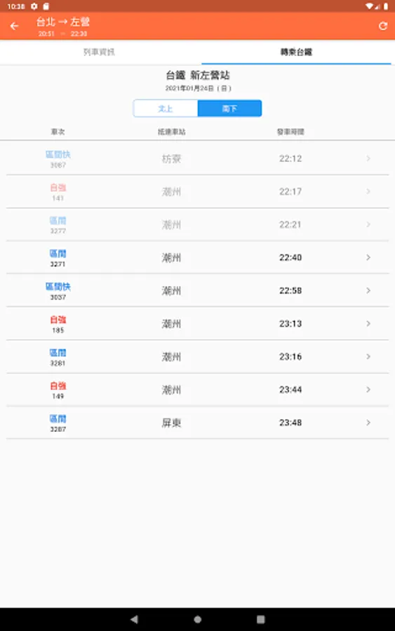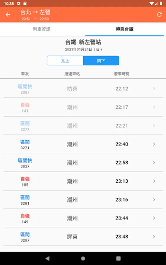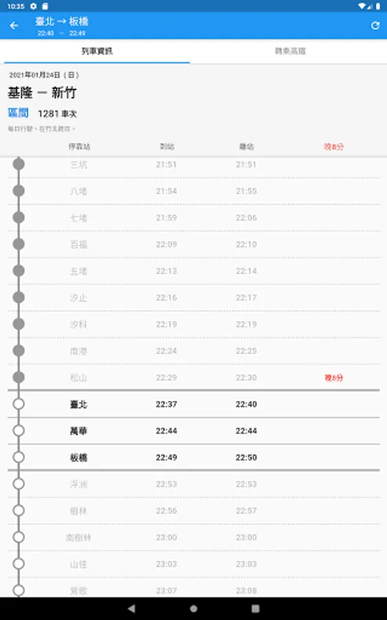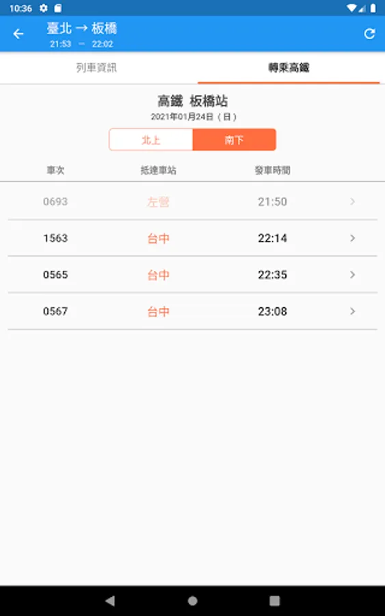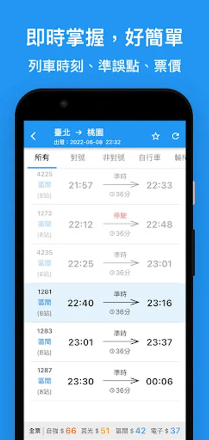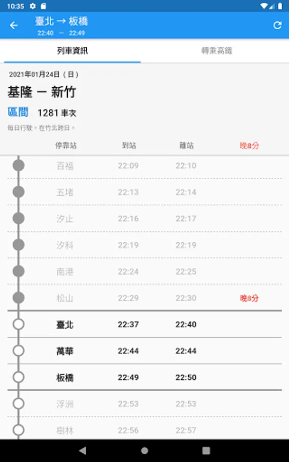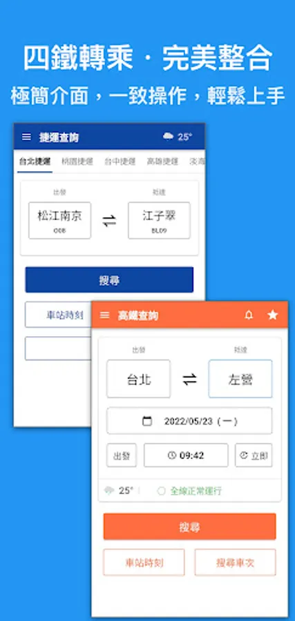 - High-speed rail start-to-stop station timetable, train number query, fare information, transfer to Taiwan Railway/MRT time query (one-click completion)