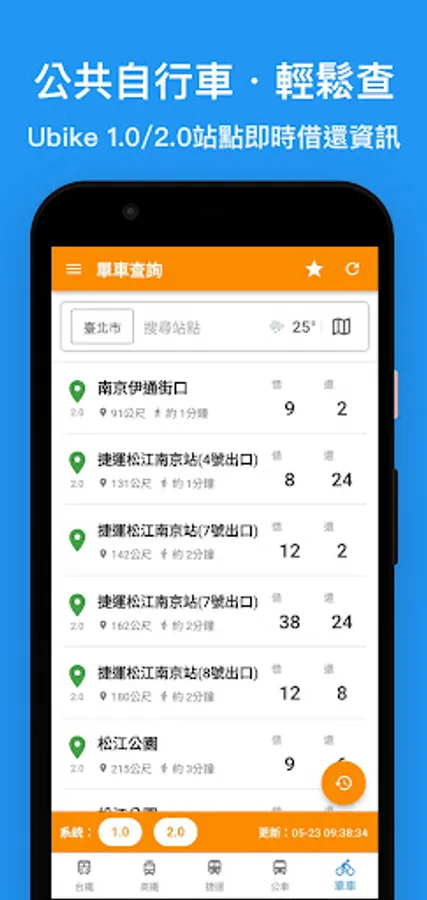 ・Includes "Bus/Passenger/Ubike(1.0/2.0)" dynamic information (super convenient)