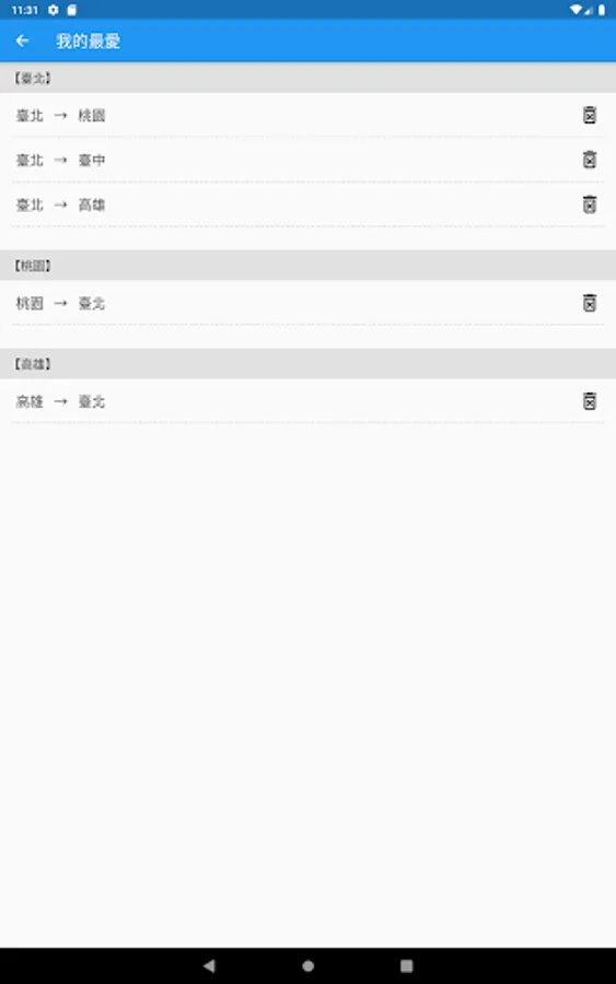 - In 〖My Trip〗, the query service of "Taiwan Railway/High Speed Rail/MRT/Light Rail/Bus/Bicycle" can be perfectly integrated.