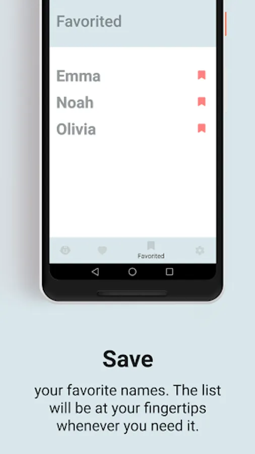 Scroll to the right - if you like the name, and to the left - if the name is disliked, so that it does not come up again. Favorite names are saved and always at hand.