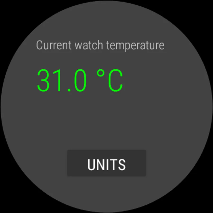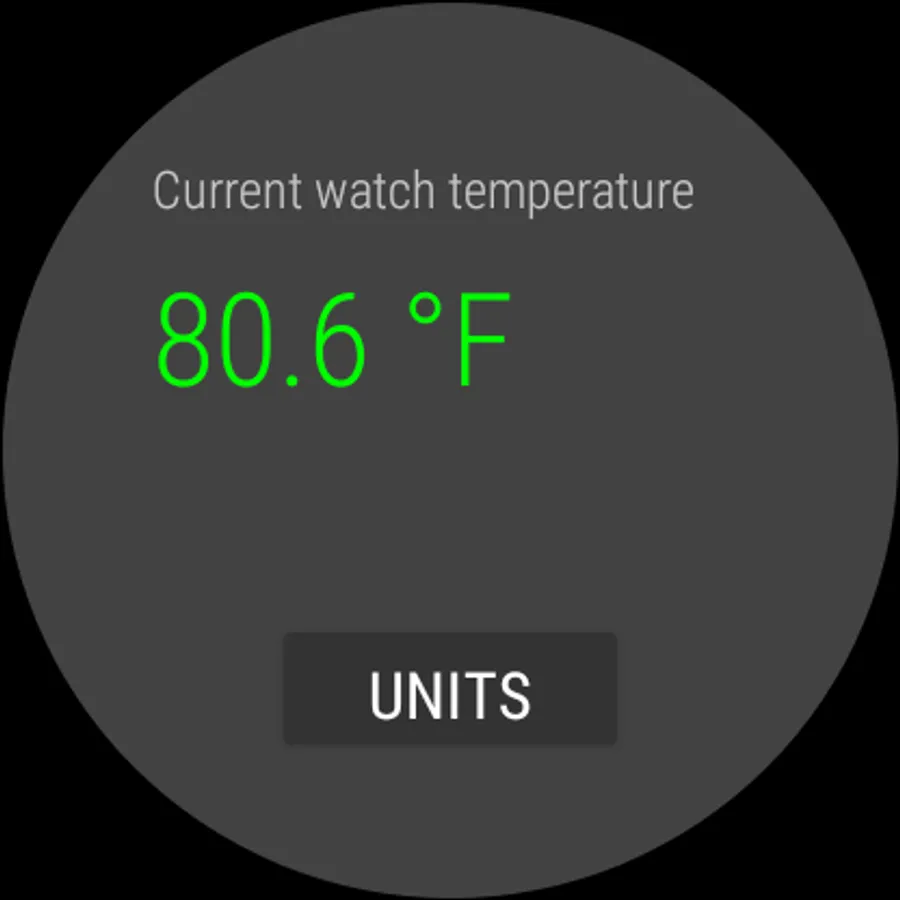This application is able to show the current temperature of watch which might be close to ambient room temperature. You can switch between Celsius and Fahrenheit units