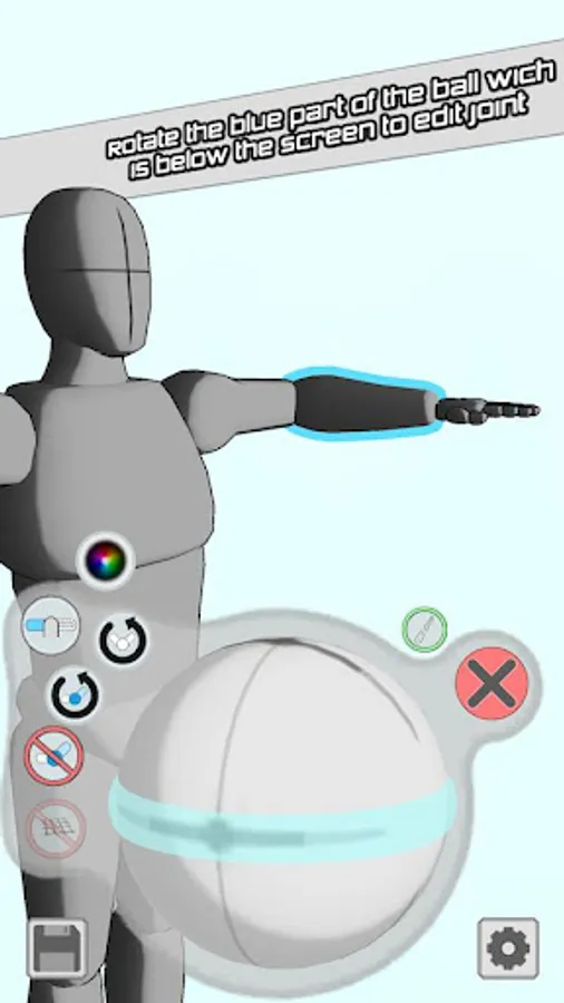 - Edit every joint to make a pose in a natural and intuitive way , You can rotate the blue part of the ball which is below the screen to edit the joint ,it is easy to use
