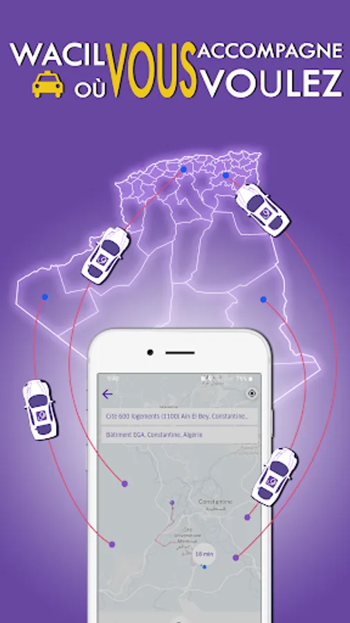 WACIL is the platform for private drivers and taxis through which you can order a driver in Constantine, the other inland cities of Algeria are in deployment,