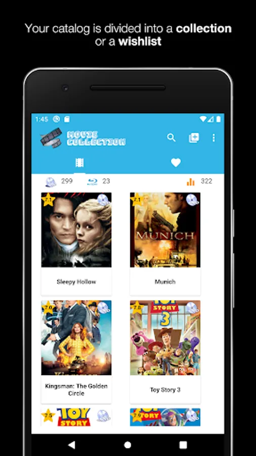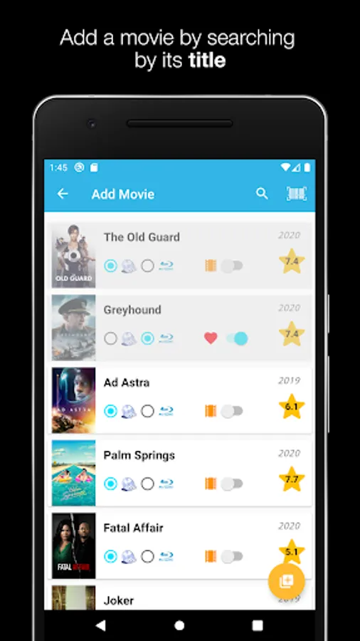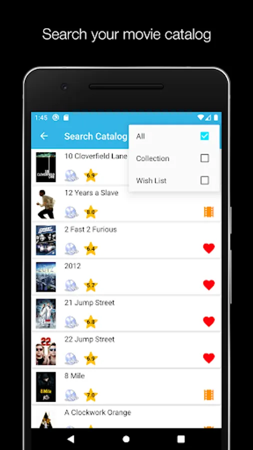 6. Add movies to your collection or wish list by searching the movie by title or partial title.