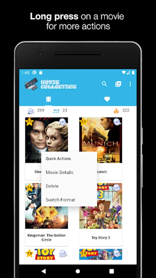 A sleek and approachable user interface making managing and collecting movies easy and aesthetically appealing.