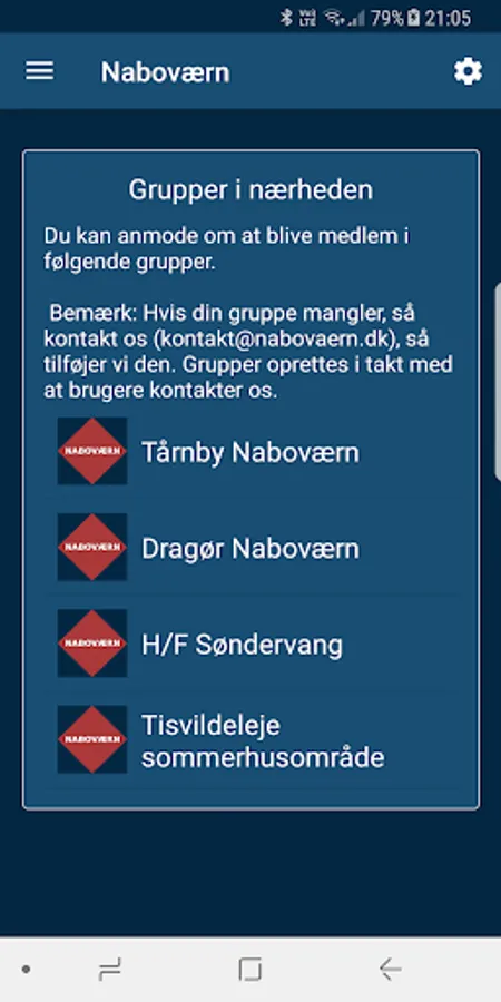 Note: If you want a group for your area, please contact us at kontakt@nabovaern.dk and we will create a group for you.