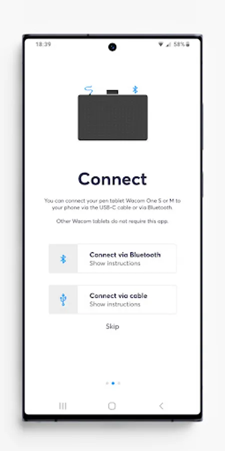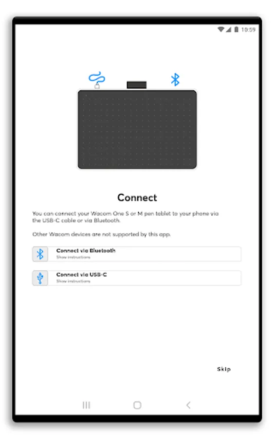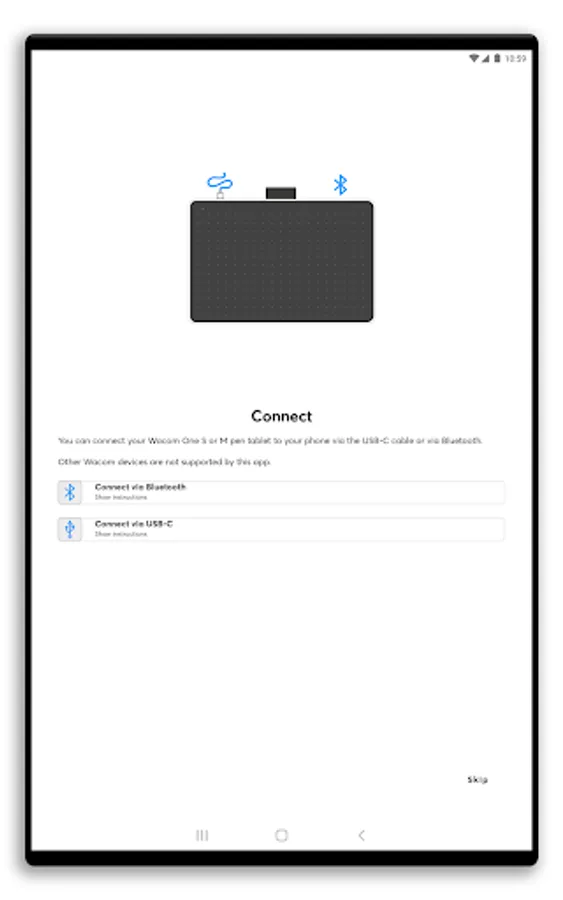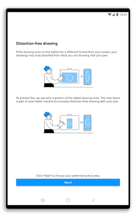 The screen of your Android device has a different proportion than the drawing area on your Wacom One pen tablet. Without the Wacom Center App, the drawing displayed on the screen may look distorted from your pen strokes on your Wacom One pen tablet.