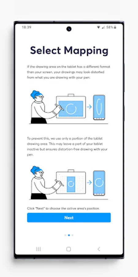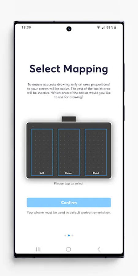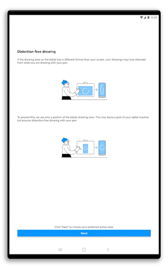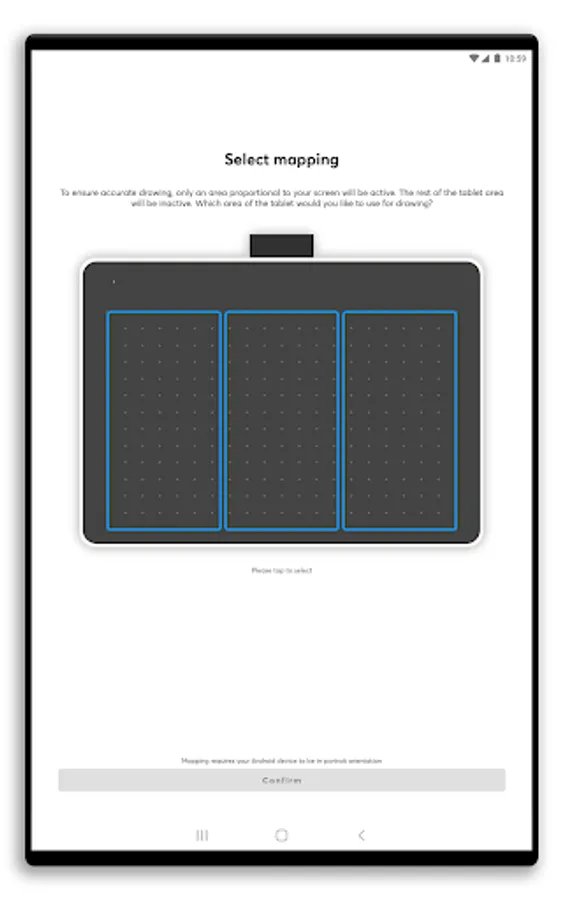 Wacom Center app calculates the exact size of the Wacom One drawing area needed to assure distortion-free drawing, and adjusts the drawing area accordingly. The rest of the tablet area will be inactive. On most Android devices, you can choose between three options for the drawing area location.
