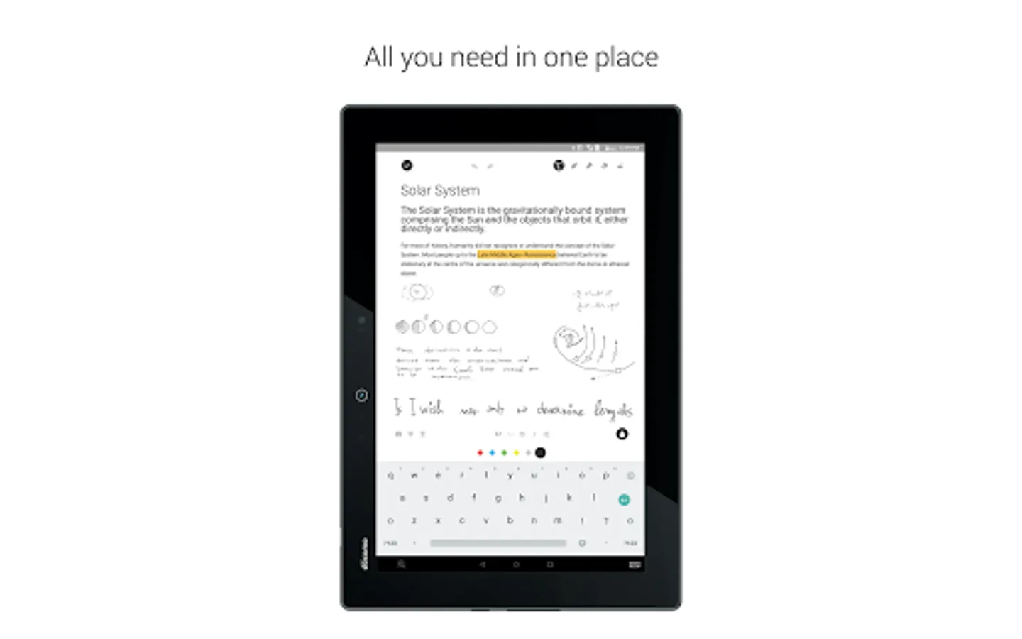 Choose your preferred style from a focused palette of pens, colors and highlighters, and draw or write freely with the most natural digital ink experience out there.