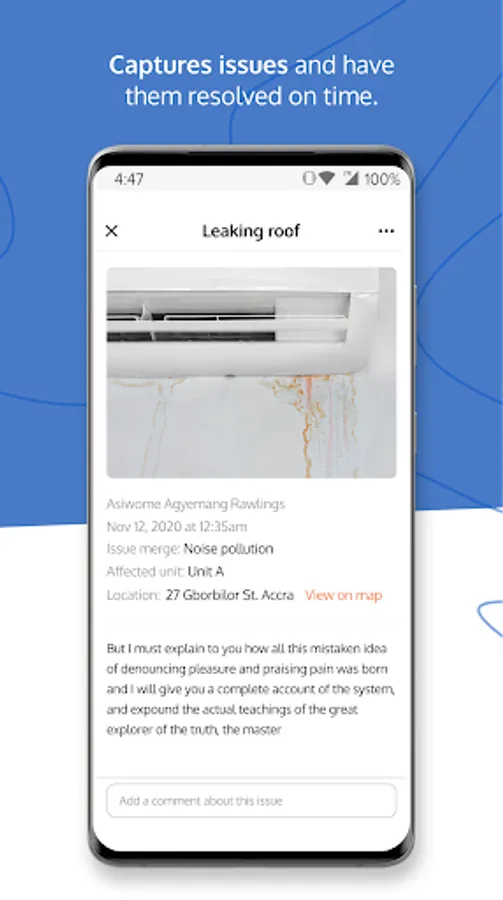 Concurrently, (soft) Facilities Managers get digital property management services and can directly assign issue based tasks to certified artisans, broadcast news, receive collective sentiment and asset analysis reports and much more.