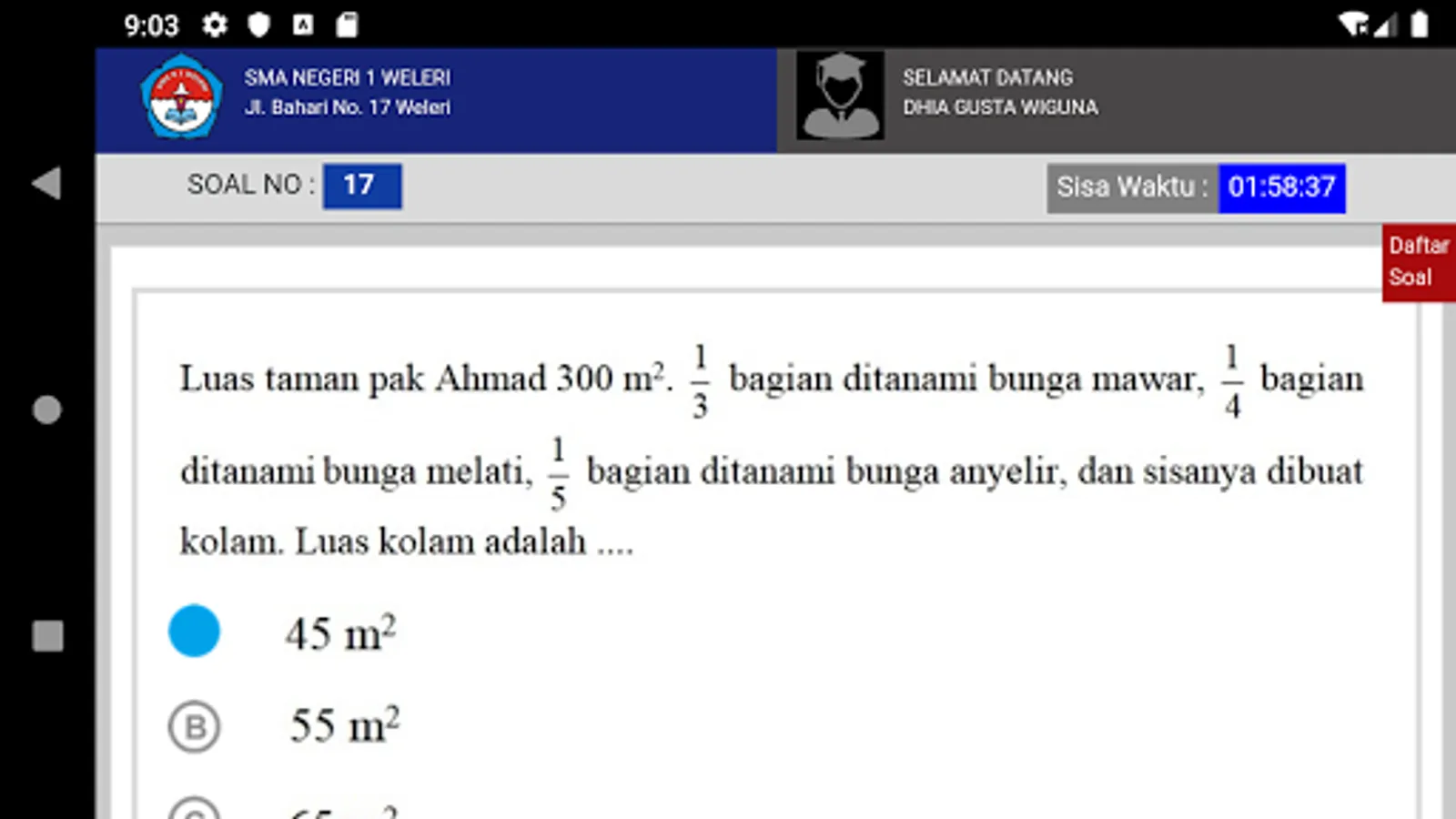 The android application that is used in SMA N 1 Weleri is based on an android phone which aims to simplify the test and as a zero paper effort