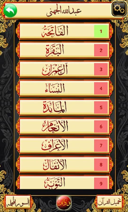 - Listen to each surah separately with the possibility of repetition according to your desire