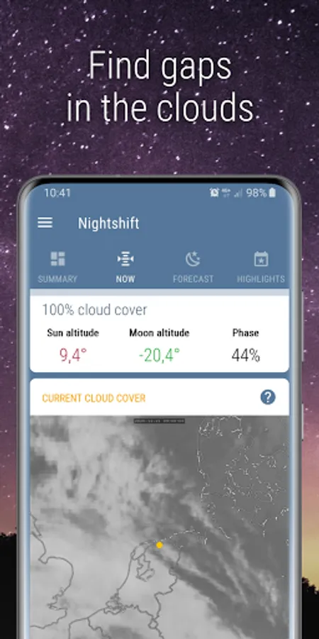 Nightshift helps you find perfect nights for stargazing, assists you in observing your favourite planets, meteor showers and deep-sky objects and keeps you up-to-date about the celestial events in tonight's sky. Nightshift is the ideal free night sky app for the experienced amateur astronomer as well as the casual stargazer!