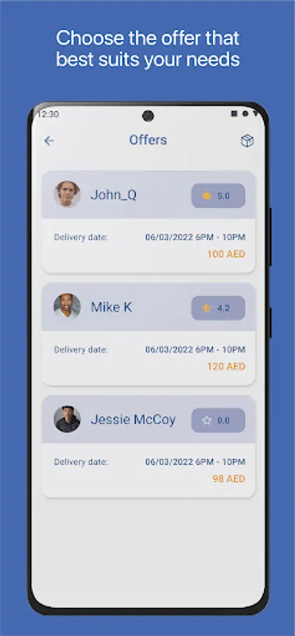 Receive bids and choose the best deliverer: Find the person that offers the perfect balance of quality, price, and time in our easy dashboard.