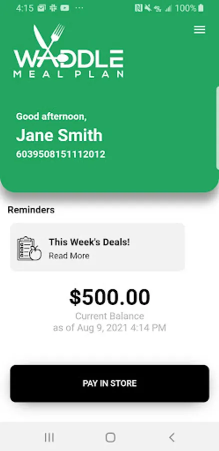Waddle Meal Plan Screenshots