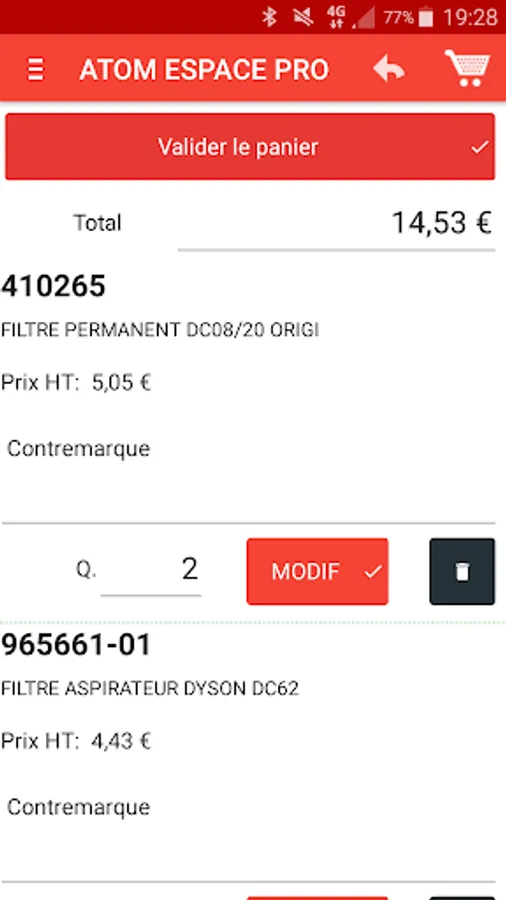 The mobile app is linked to the website of ATOM SA. You can find your cart as well on mobile as on the web.