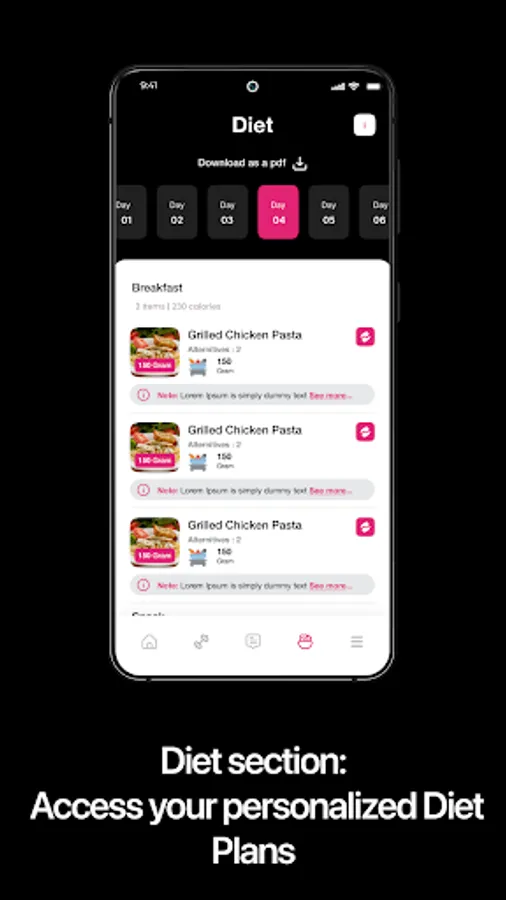 View and manage your diet plans created specifically for you, with the flexibility to request adjustments anytime.