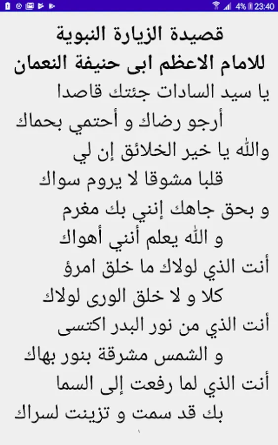 Imam Abu Hanifa Al-Numan wrote a poem in the Messenger of God, may God’s prayers and peace be upon him, that no one had seen it ....