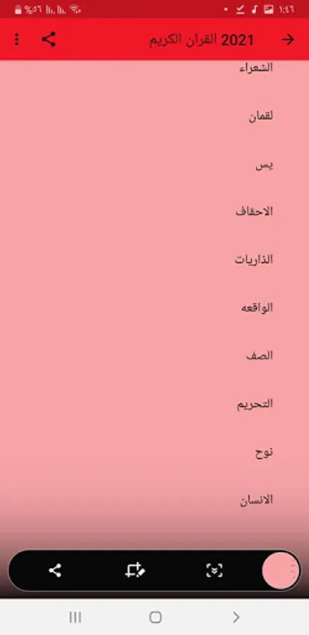 Surah Al-Baqara, Surah Al-Kahf, Juz 'Amma, Al-Nisa', Al-Zaryat, Al-Saff, An-Nahl, Al-Haram, Al-Fatihah, and Al-Mu`wadhat