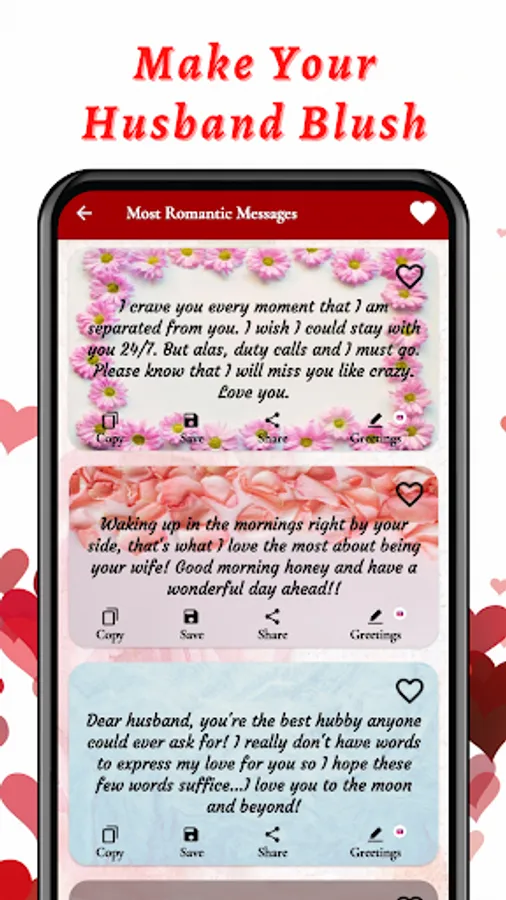 With this app, you can choose from a wide range of most romantic messages, Valentine's day notes, sweetest love messages, love quotes for husband, and love stickers, to express your feelings and let your husband know how much you love him. From good morning messages to good night messages, this app has everything you need to keep the love alive and make your husband feel loved every day.