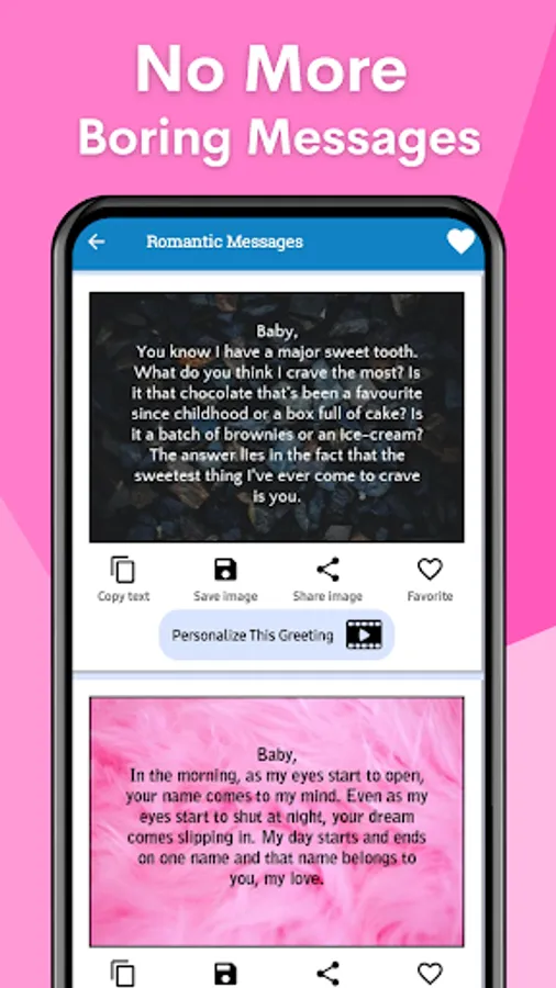 The app also includes a category for sending sweet and romantic love messages for boyfriend, as well as a collection of Love GIFs to accompany your messages. The Love Name Poem category lets you create a poem using your and your boyfriend's names, making it a unique and personalized message.