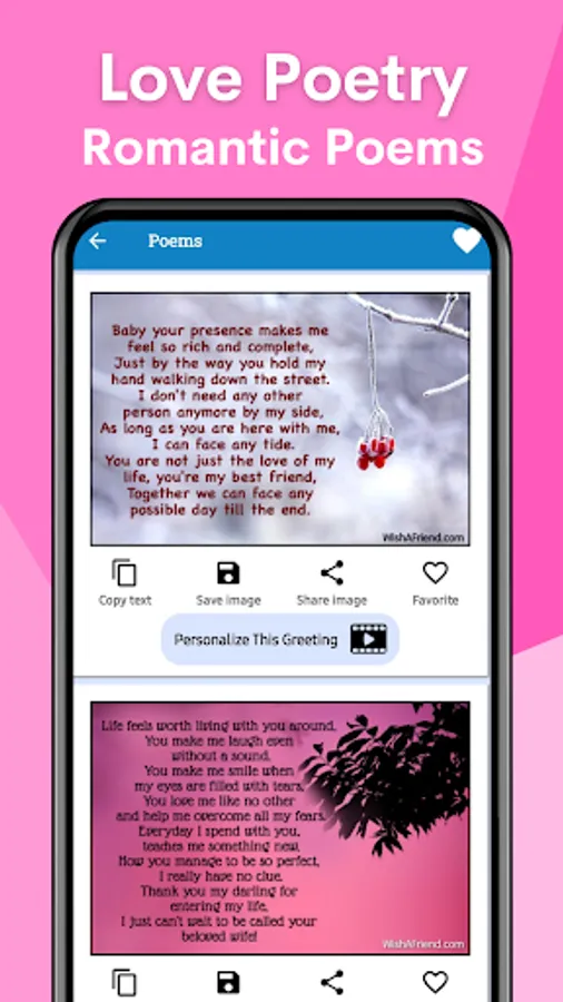 If you are looking for a creative way to show your love or send Valentine's day notes, the Photo Collage and PIP Collage categories let you create a stunning collage of your favorite pictures together. Messages For Bf to Make His Heart Melt will melt his heart and show him just how much you love him. The Poems category includes romantic poems and Valentine's day notes to send to your boyfriend, reminding him of the special connection between you two.