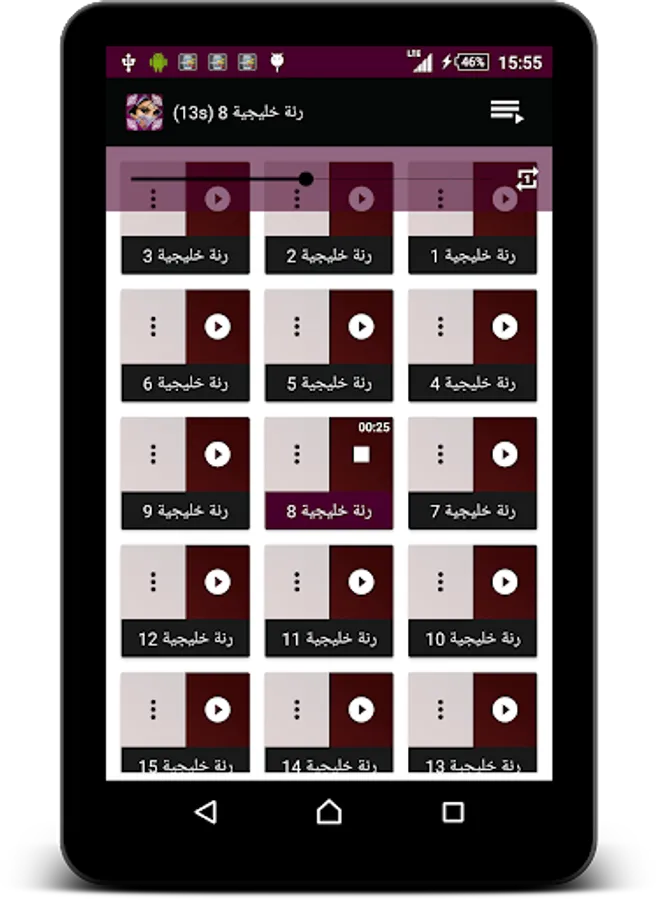 Are you a fan of songs Gulf Arab high-end and looking for a distinctive private Gulf ringtones on your phone? Application Gulf ringtones upscale splendor without Internet gives you the opportunity to listen and ٱkhttiar the most beautiful tones and rings Gulf for mobile, for the most famous Arab singers Hussein Al Jasmi, Rashid Al Majid, Walid al-Shami, and the dreams of others, as the application with all Android devices commensurate