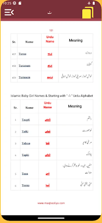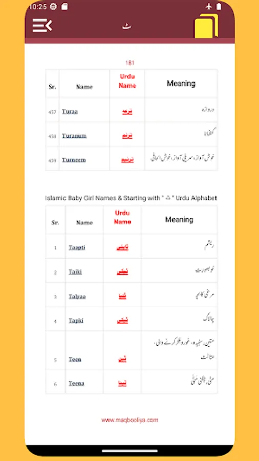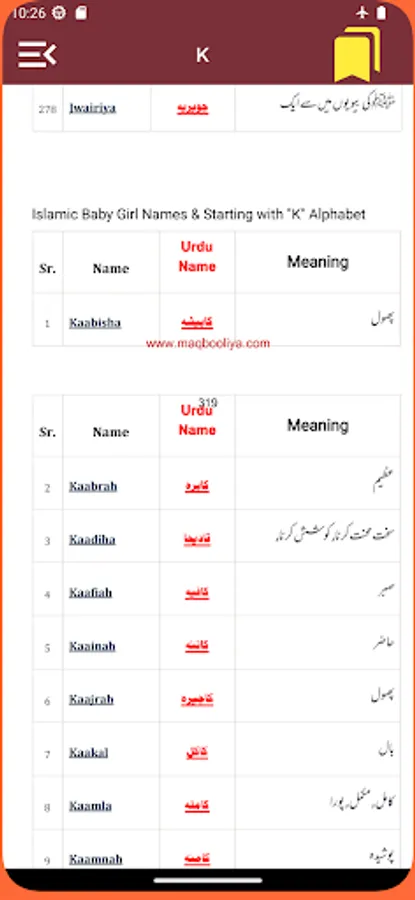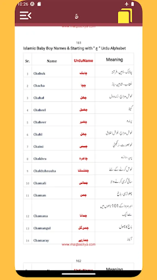 After installing Islamic Name With Meanings (ناموں کی لغت) App you can read largest collection of popular Muslim Baby Girl names & Muslim baby Boy names with Urdu meanings and English spellings. In this app you can also read more than 5000 Muslim Boys Names and more than 5000 Muslim Girls Names in Urdu Language with meanings. This great collection of popular Islamic baby names and their meanings are verified by a Misbahi Alim (an Imam). In short this app is specially very help full for parents to search the meaning of Islamic name that they want to name their newly born baby.