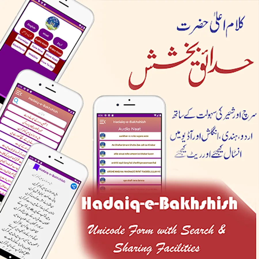Now Hadaique E Bakhshish (हदाइक़े बख़्शिश) is available as an Android Application, Hindi Speaking Android Users to read and gain acknowledge on the go.