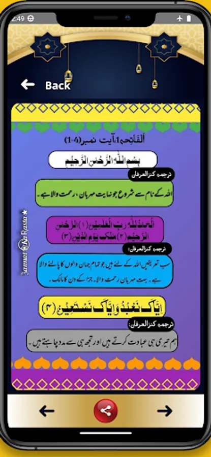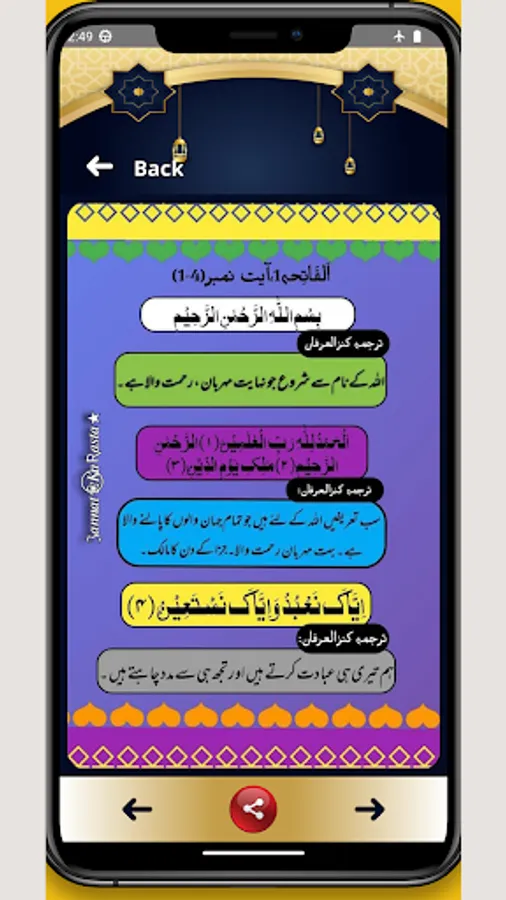 This application contains Islamic teachings in which we have included forty hadiths with golden words and a series of translations of Quranic verses and a bouquet of hadiths.