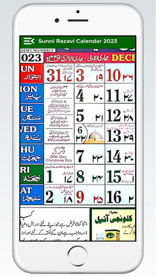 Sunni Razvi Calendar 2023 is Muslim Urdu calendar سنی رضوی اردو اسلامی کیلنڈر Content In This App.
