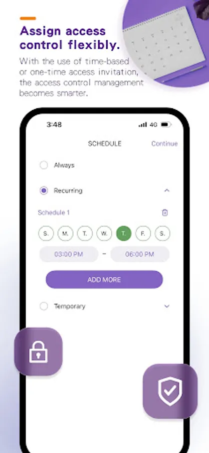 This app also supports flexible access management including recurring, temporary, and one-time access. You are able to share access at any given time, and keep track of your lock history.
