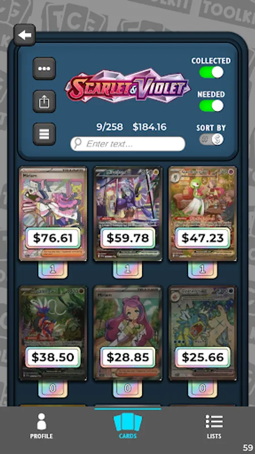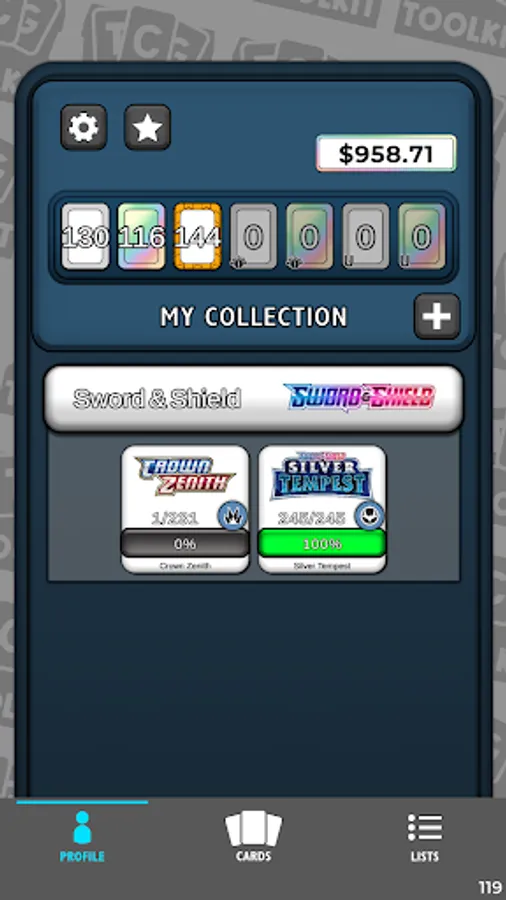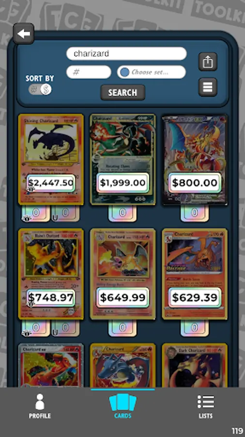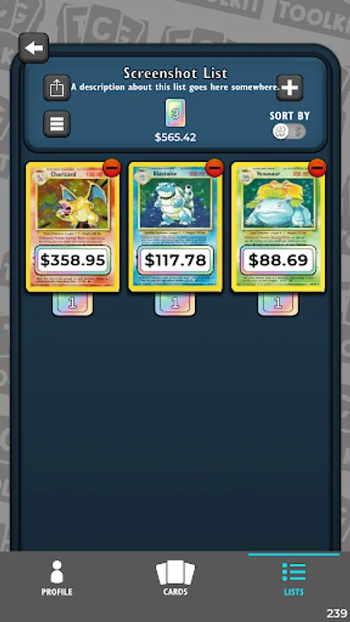 Your new favorite card database app. We have created the best and newest app for storing all of your favorite TCG cards! With prices updated DAILY, you'll never have to worry about accurate pricing data on cards. We also have a ton of features in the app to make sure it replaces ALL the other card database apps on your phone.