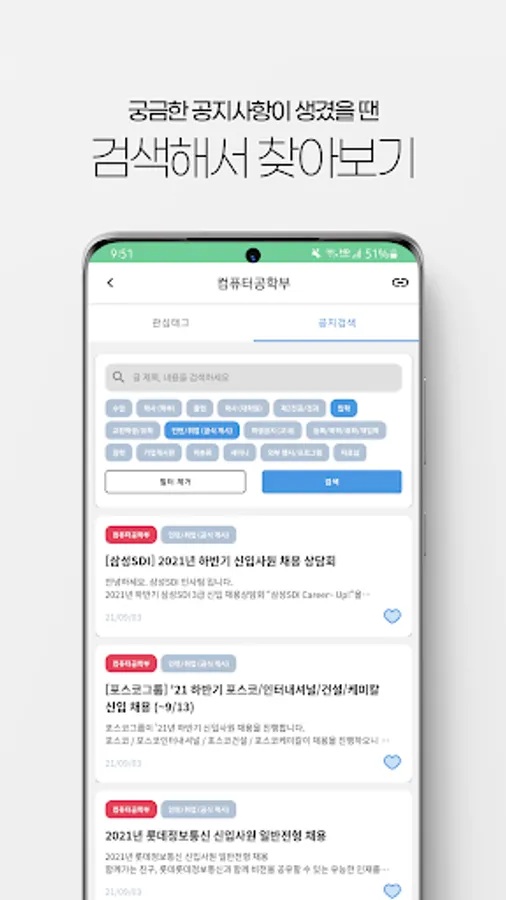3) In the case of notices corresponding to the department and tags you are subscribed to, you can receive push notifications when new posts are posted.