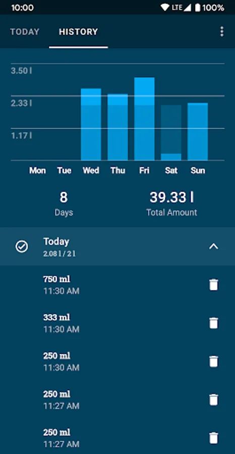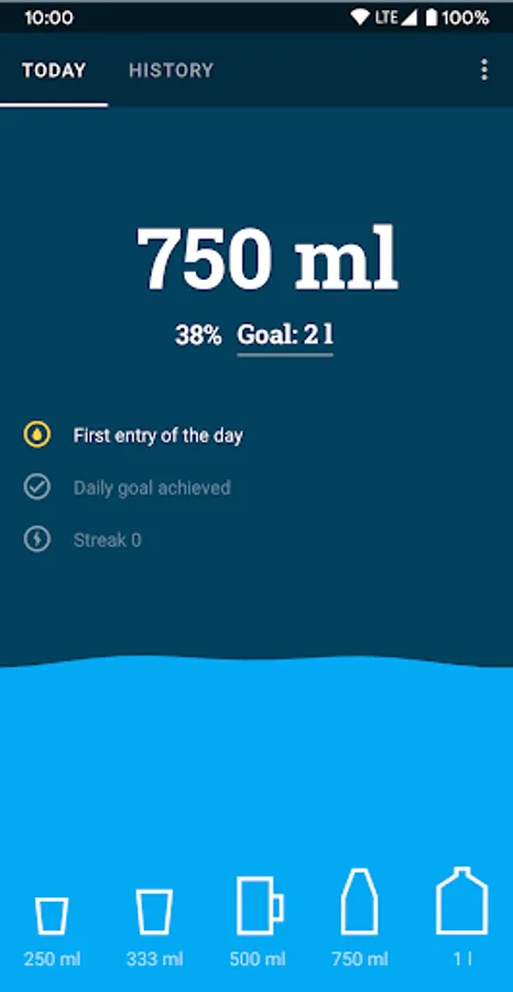 Easily track your intake using Drinky. Set a daily goal to stay motivated and reach long term success.