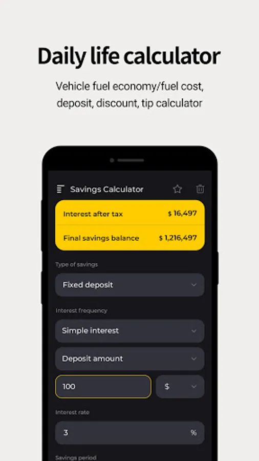 Calculate payment amount by setting deposits and savings and setting interest rates and deposit amounts