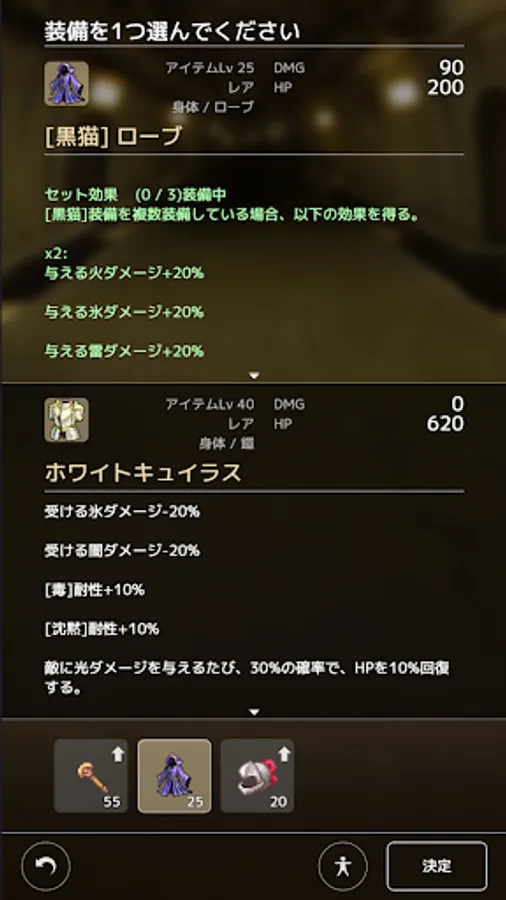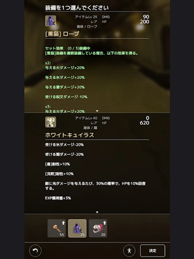 Effects are added randomly to equipment. Select and equip only one of the drops.