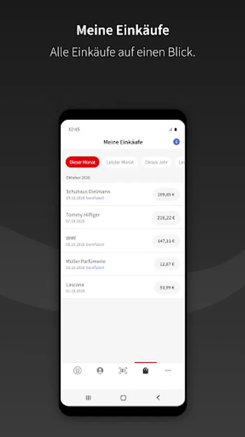 The payment of vouchers and tobacco products is excluded. Purchases in the market hall and the fashion departments are considered separately and not accumulated.