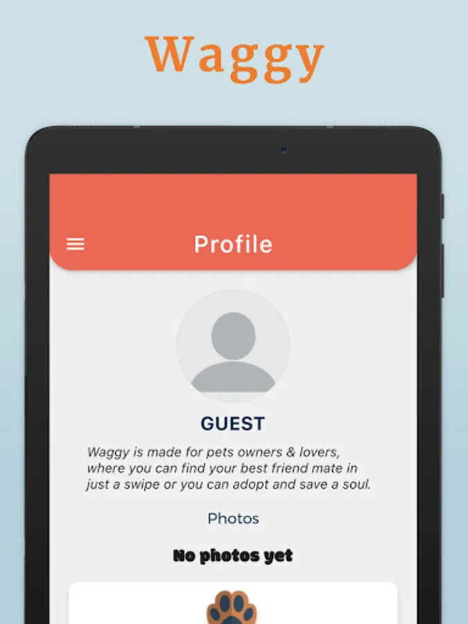 Waggy is made for pets owners & lovers, where you can find your best friend mate in just a swipe or you can adopt and save a soul.