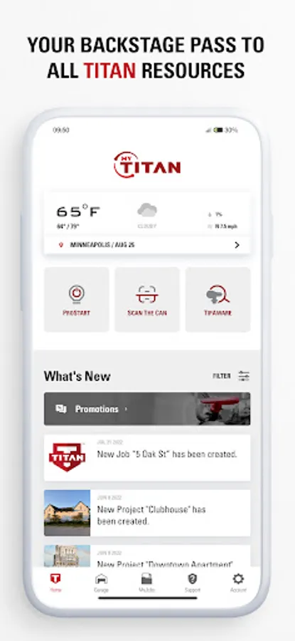 Track your equipment, jobs, and more with the MyTitan™, Titan’s powerful digital toolbox created especially for contractors and business owners. Stay ahead of the game, do more with less time, and never lose track of another detail with innovative technology that puts the power of Titan at your fingertips.