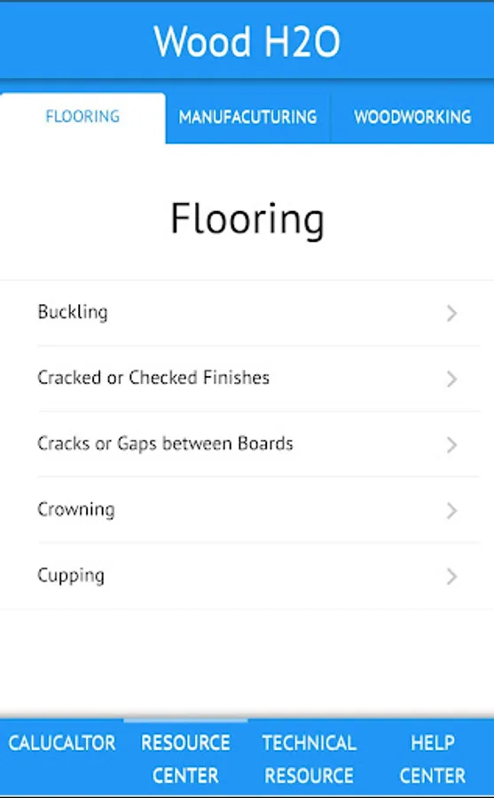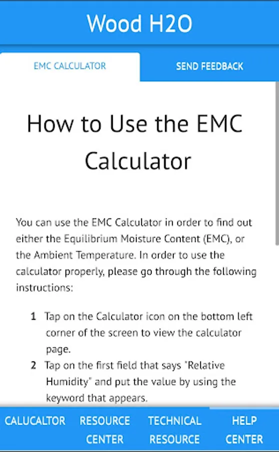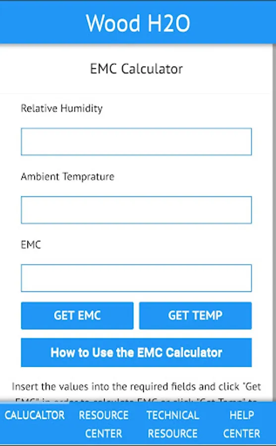 The Wood H2O app provides woodworking professionals, wood flooring installers, and wood hobbyists a user-friendly EMC calculator interface as well as practical solutions for common moisture-related problems, including: