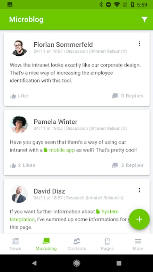 Check for news and microblog posts on the go and join the discussion! Sharing important announcements, interesting news or ideas has never been easier.