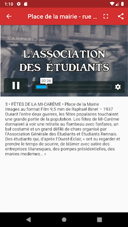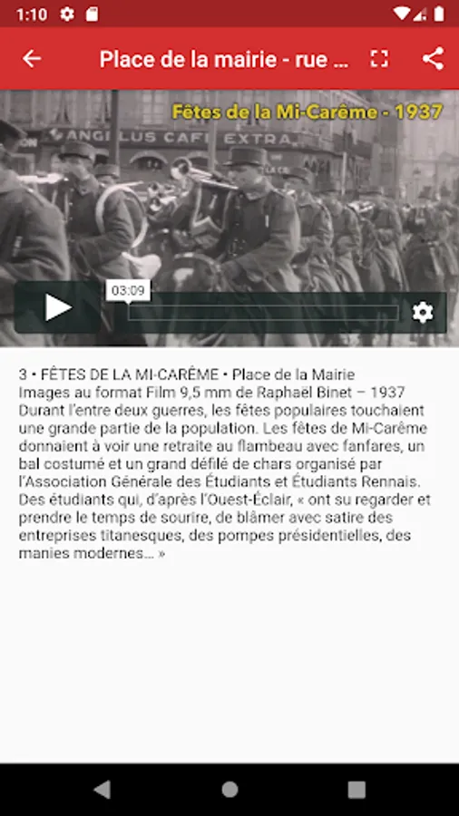 Discover the city of Rennes through its history. Go for a walk and explore time with the montages of video archives scattered throughout the city. Travel through the 20th century and witness the evolution of Rennes and its inhabitants.