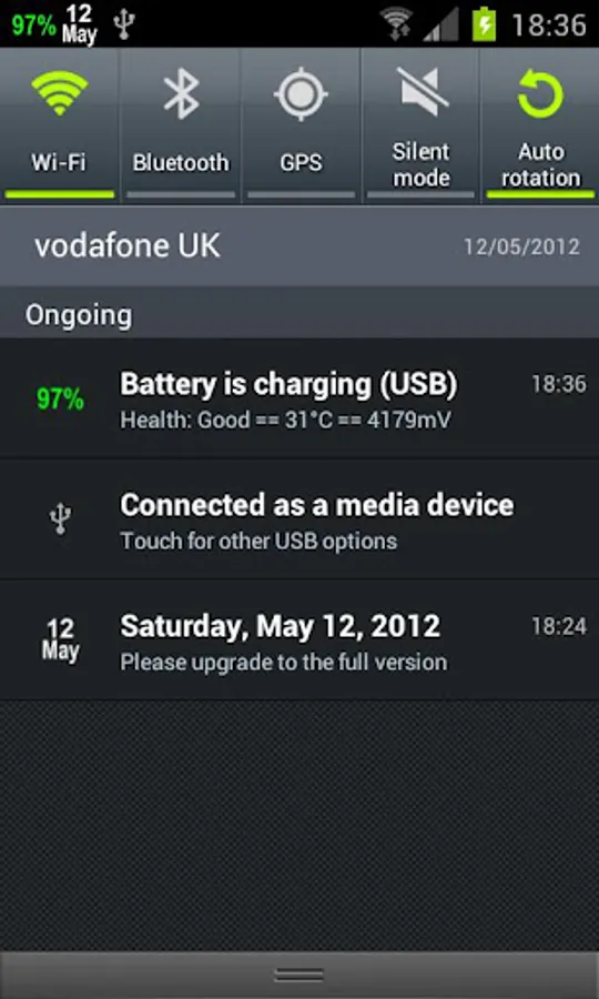 - In Android 3.0 or above, and Android 4.0 or above, the Android OS has "automatic shrinking and dimming" for status bar notifications to focus on the main activity. The icons do remain at thier full size and at full intensity in the notification area when selected.