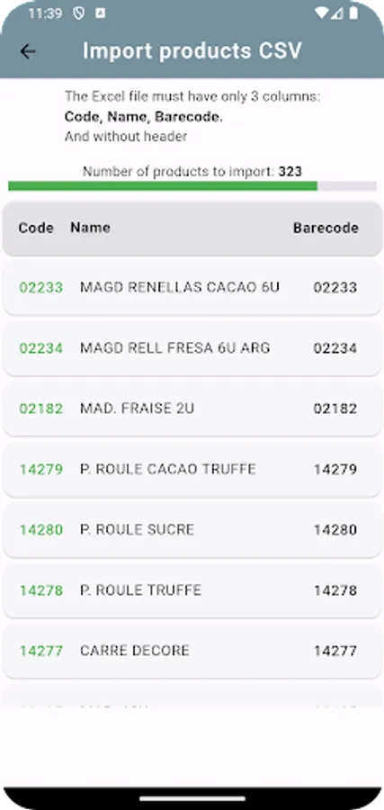 Our application offers you a simple and practical solution to do your inventories using the scan function via smartphone. First, you have the option to import a pre-existing product list in CSV format. All you need to do is upload the CSV file containing your product details to the app and the app will organize them for you.
