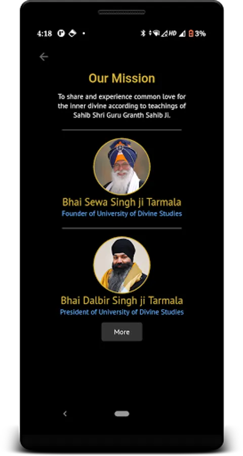With the grace of Waheguru, Bhai Sahib Bhai Sewa Singh Ji Tarmala established Gurdwara Prabh Milne Ka Chao (University Of Divine Studies) in 2007. In which the idea of selfless service, Naam Simran and Akath Katha continues after Bhai Sahib Bhai Sewa Singh Tarmala merged back in truth on December 06 2012, under the able guidance of their successor, beloved Gurmukh Bhai Sahib Bhai Dalbir Singh Tarmala who is purifying the atmosphere and human hearts continuously with the sounds(sacred hymns) of Gurbani Guru.