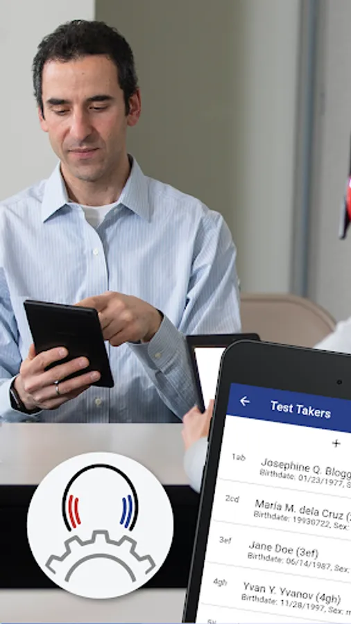Manage testing of groups with the Audhere Admin app and the Audhere Test Taker app installed on separate tablets or conduct one-on-one testing with the Audhere All-in-One app installed on a single tablet. The system can be used in conference rooms, waiting areas, classrooms, occupational exam rooms, and more!