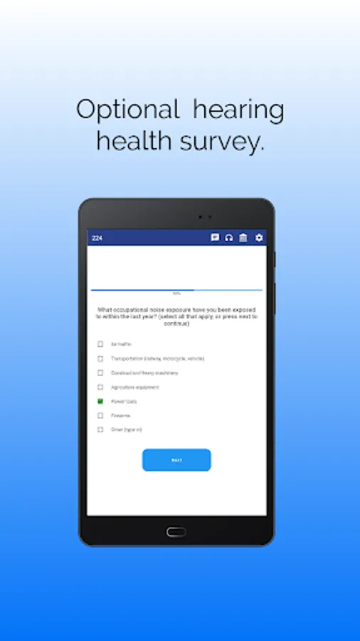 This app provides automated and manual hearing tests, hearing protection fit tests, and customizable health surveys. The app: